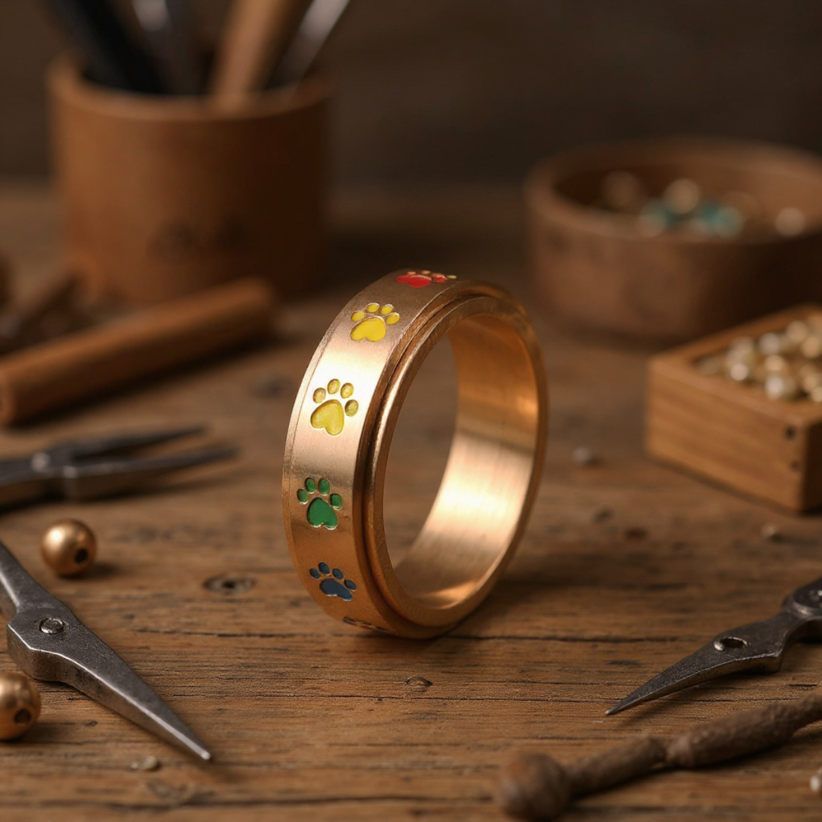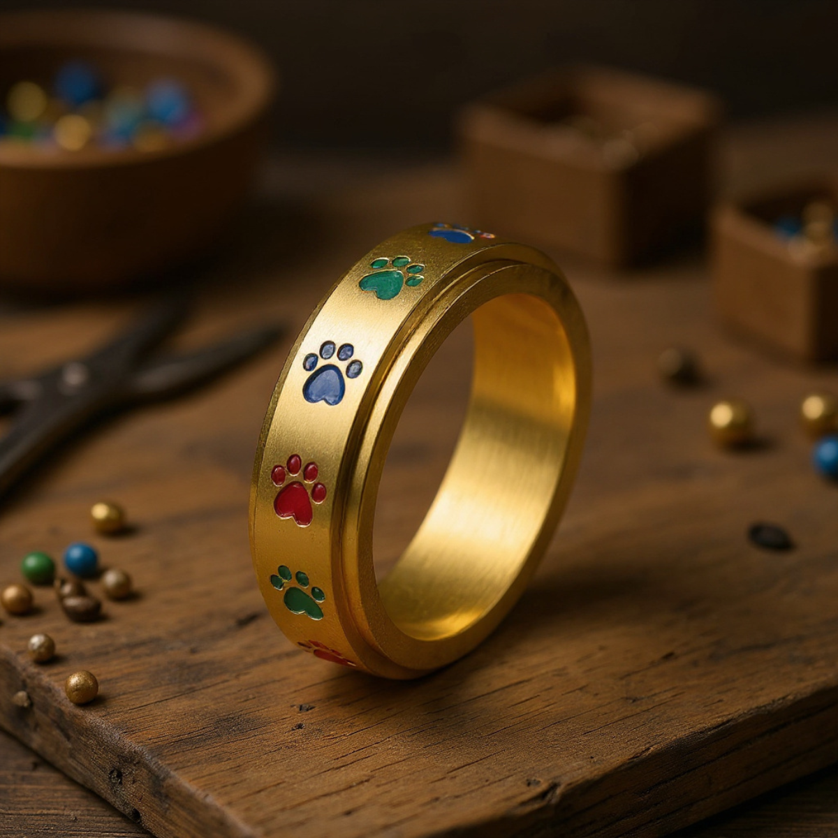 Find calm in every moment with the Anti-Stress Paw Print Ring – a unique piece that blends soothing function with heartfelt design. Featuring rainbow-colored paw prints on a smooth spinning band, it’s both a joyful tribute to your love for animals and a calming tool to ease anxiety, stress, or restlessness.
