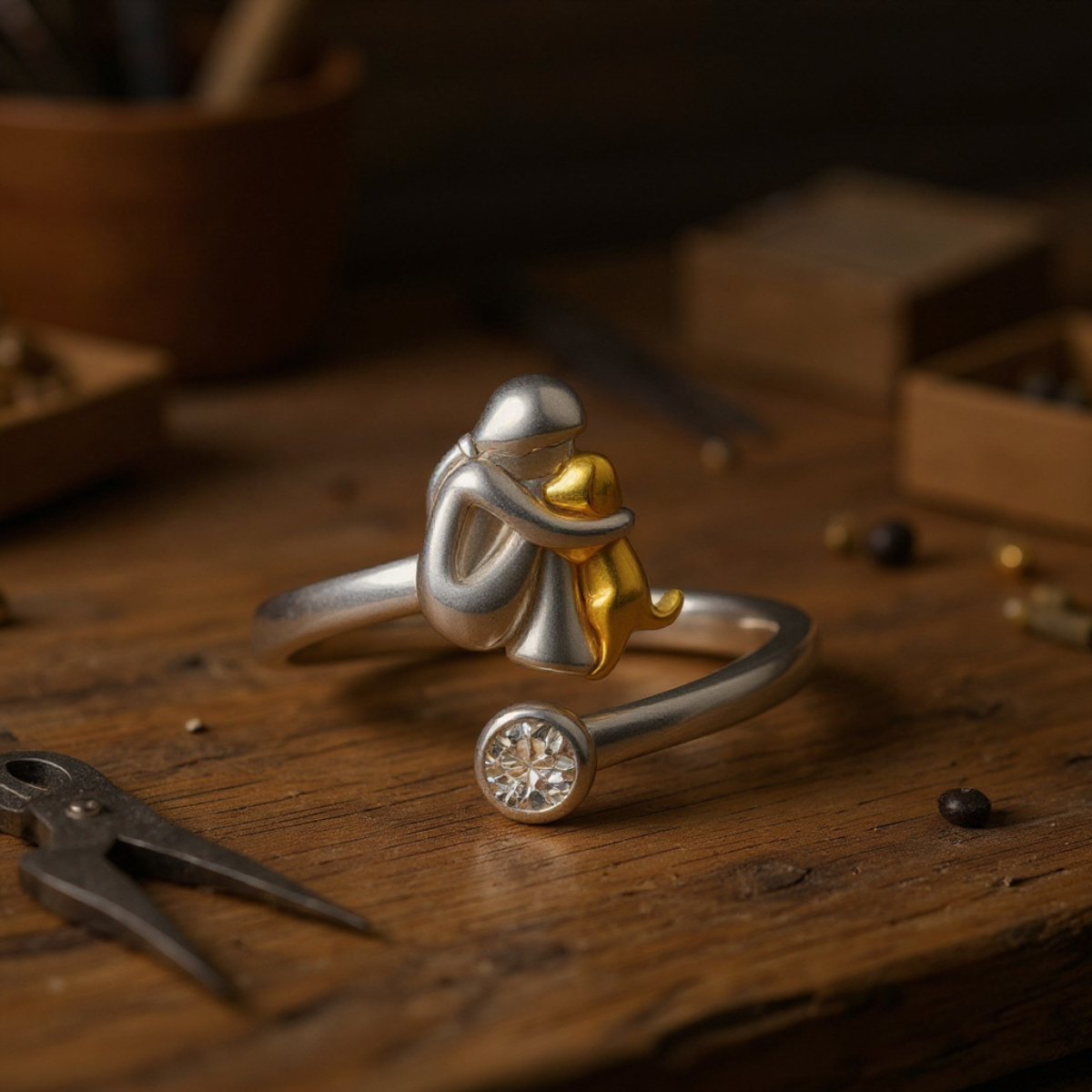 Celebrate the love only a dog can give with the Dog Embrace Ring β a handcrafted treasure in genuine 925 sterling silver, delicately accented with gold. More than jewelry, itβs a heartfelt reminder of the loyalty, joy, and unconditional love your furry best friend brings into your life every day.