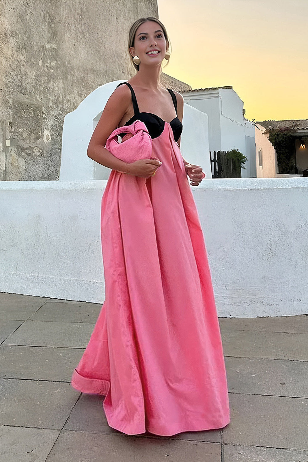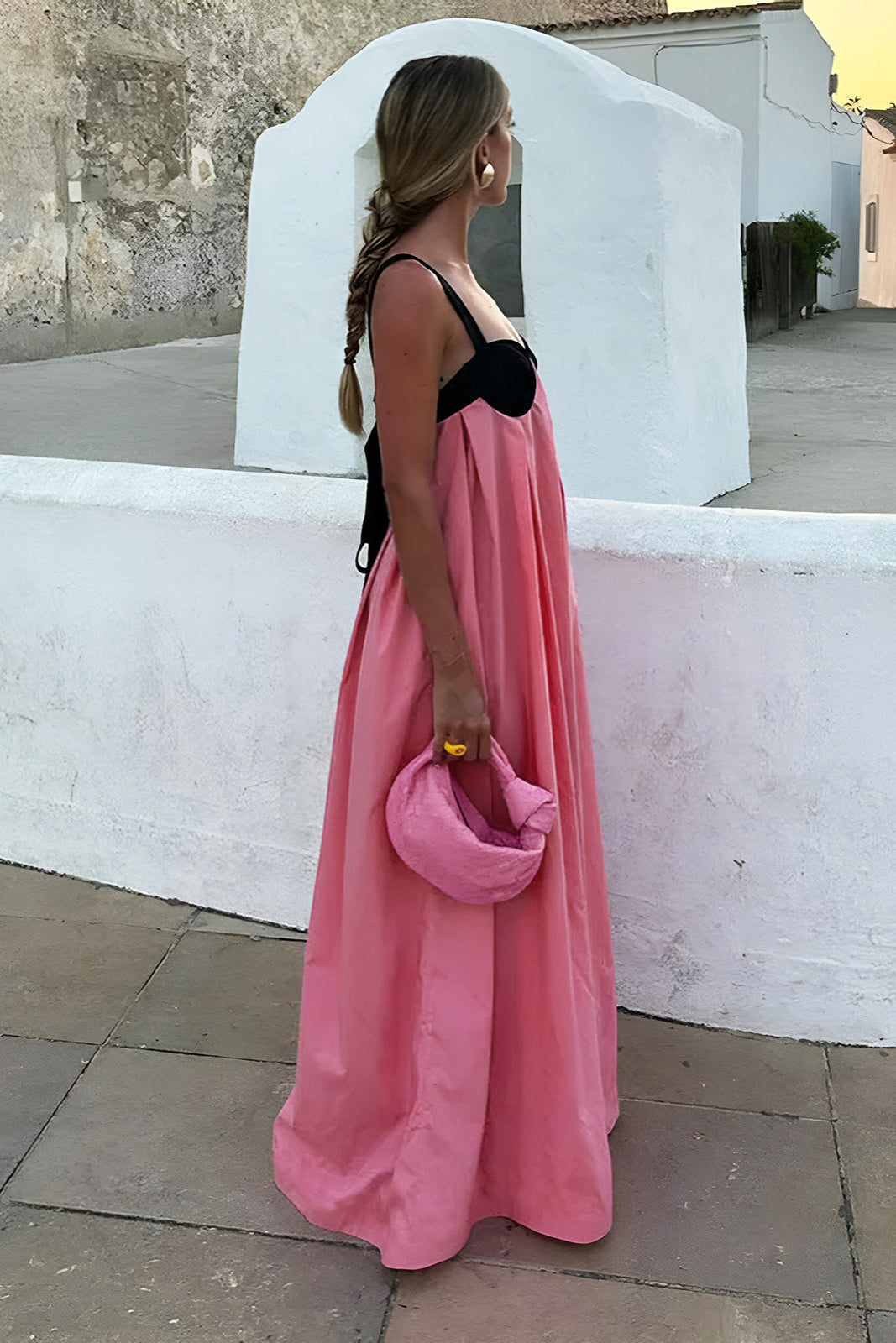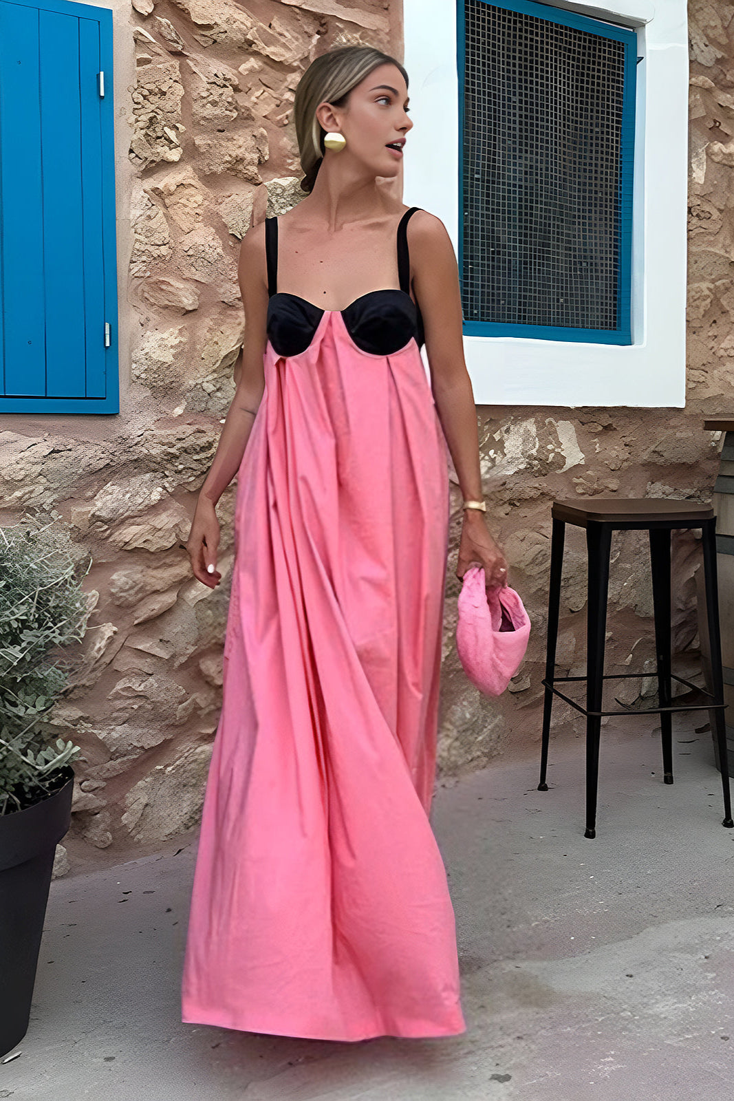 Ada | Halter Strap Długa Sukienka Maxi z Wplecionymi Wstawkami