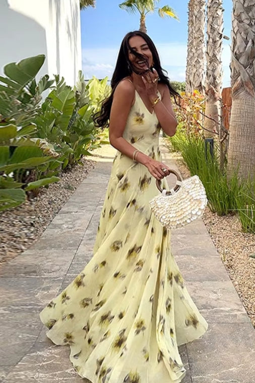 Jisara | Sukienka Maxi w Kwiatowy Wzór z Zachodem Słońca