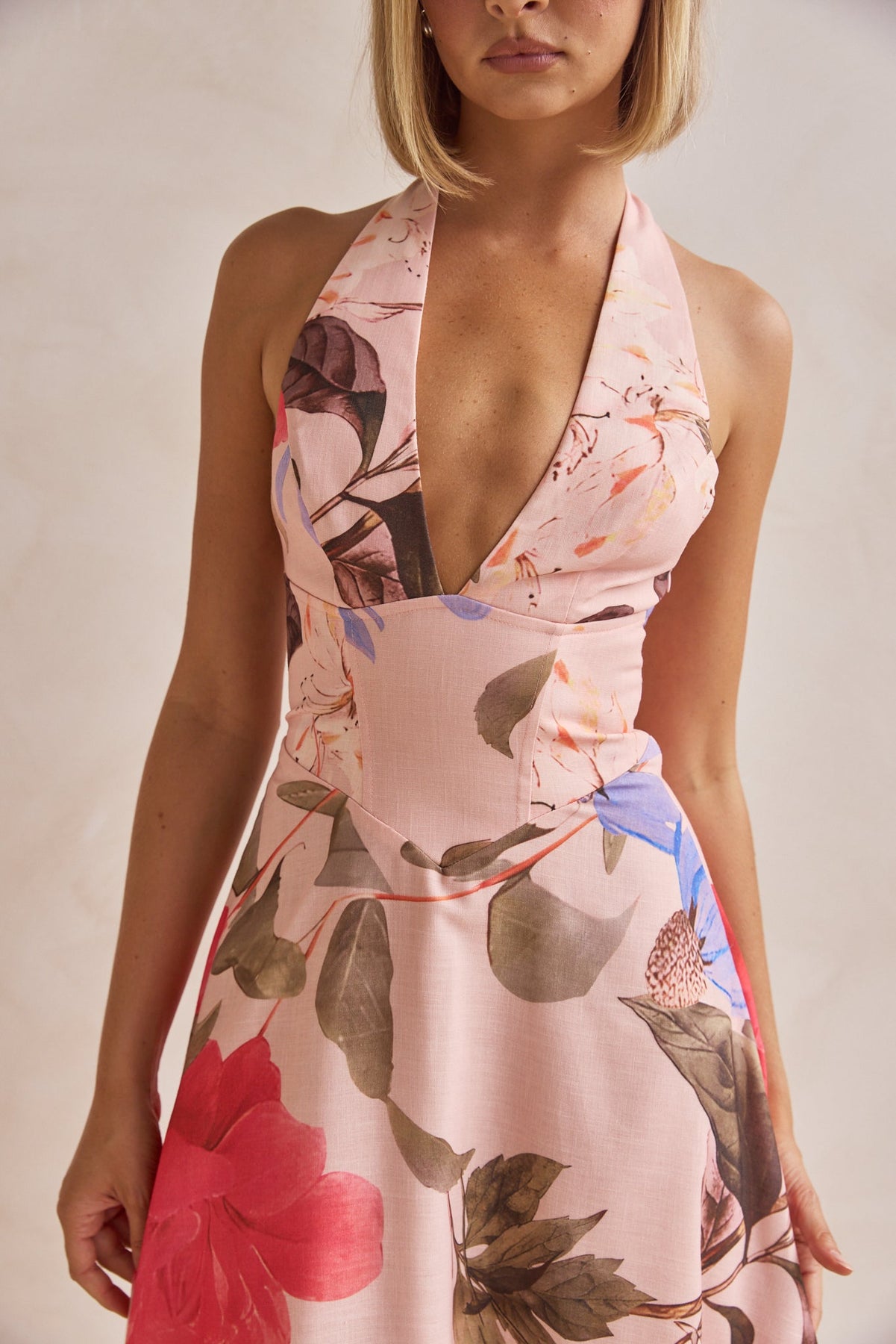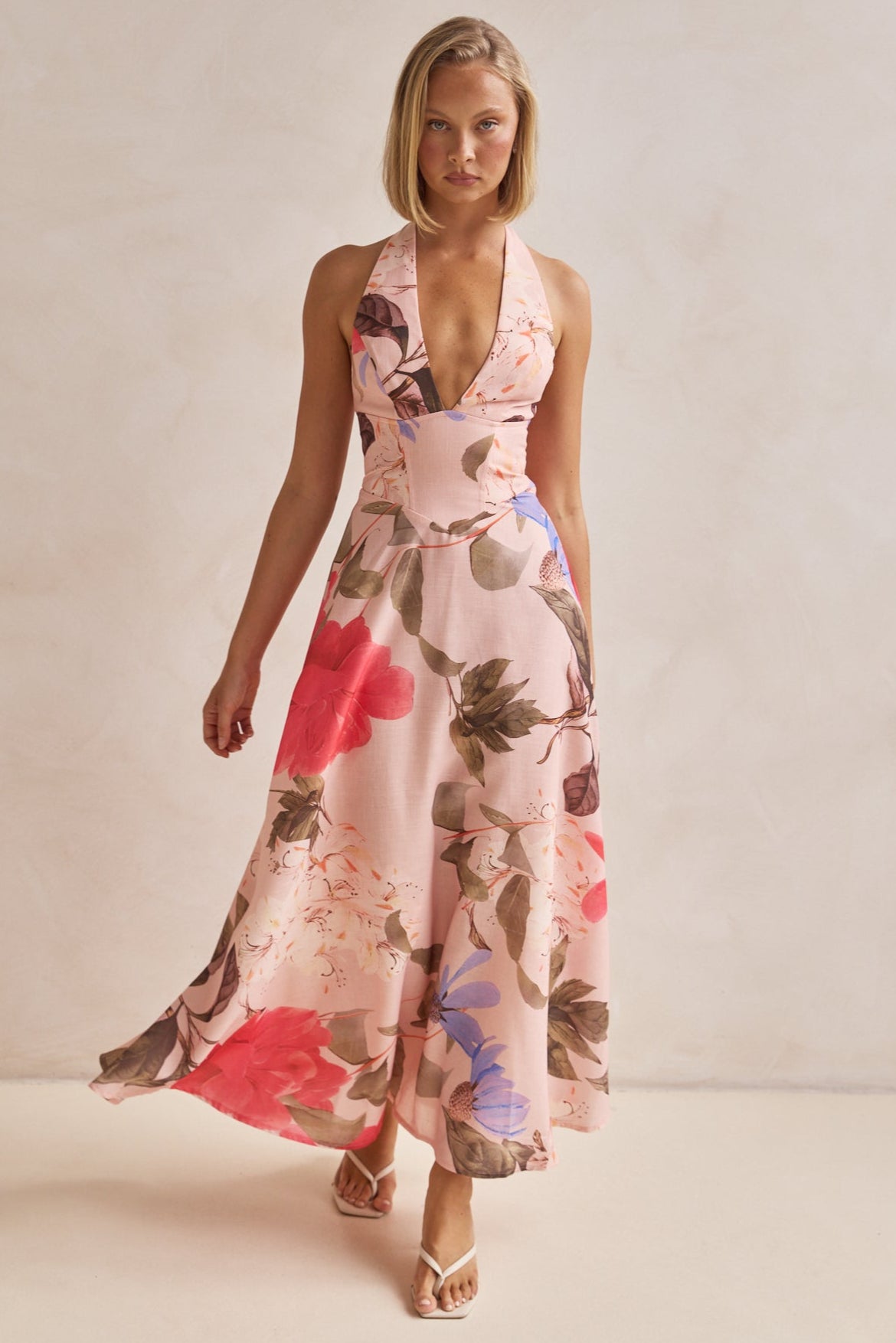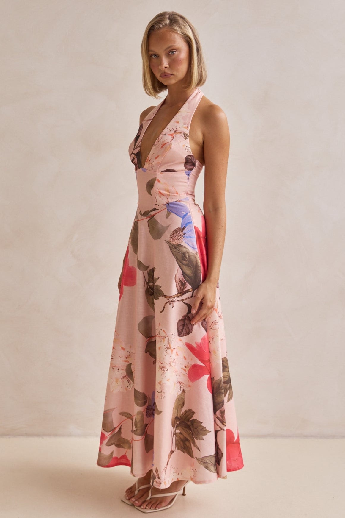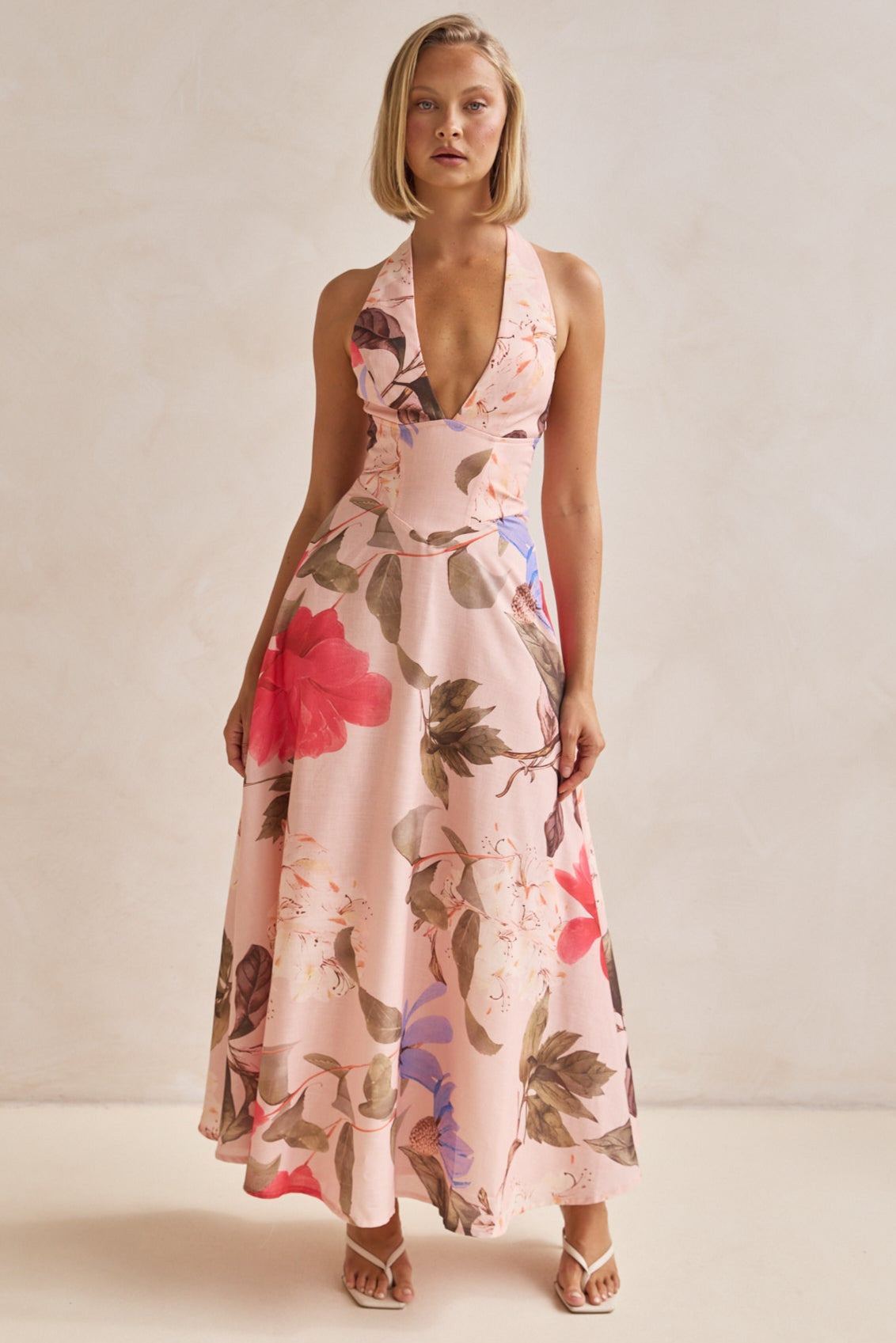 Zarelle | Kwiatowa Różowa Sukienka Maxi