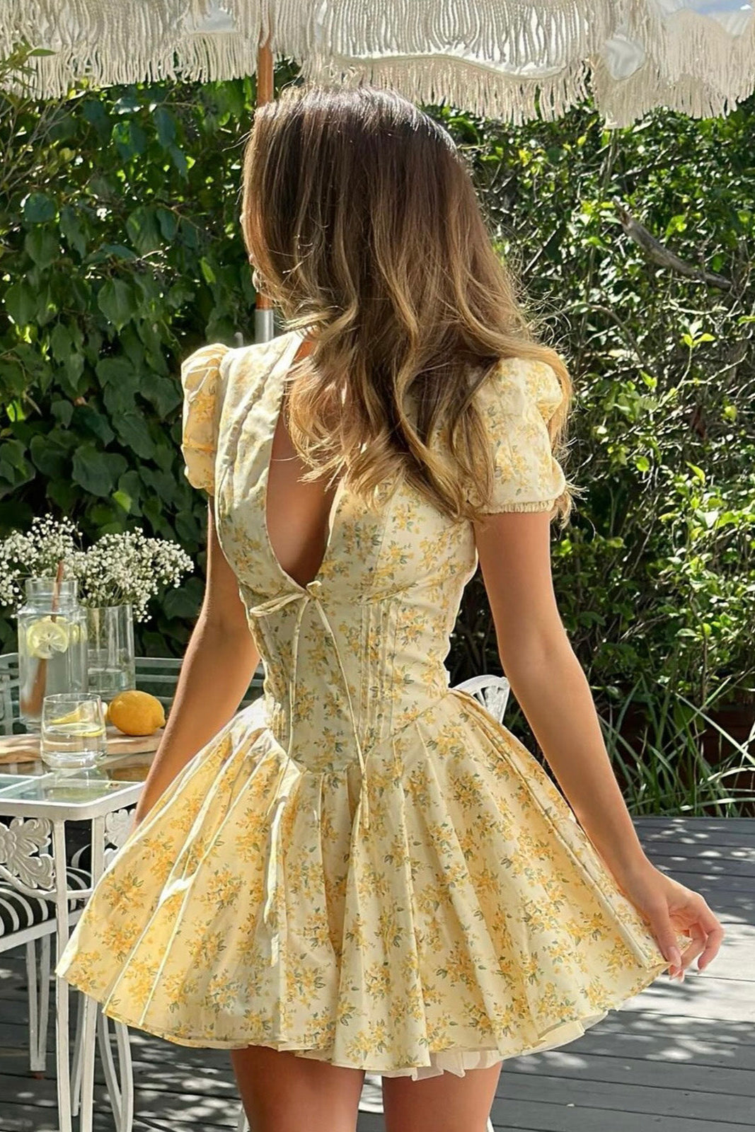 Nayara | Sukienka mini z kwiatowym nadrukiem i wąskim dekoltem