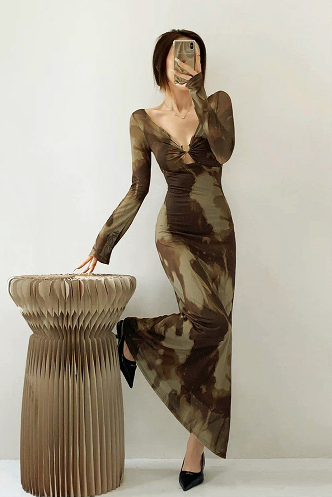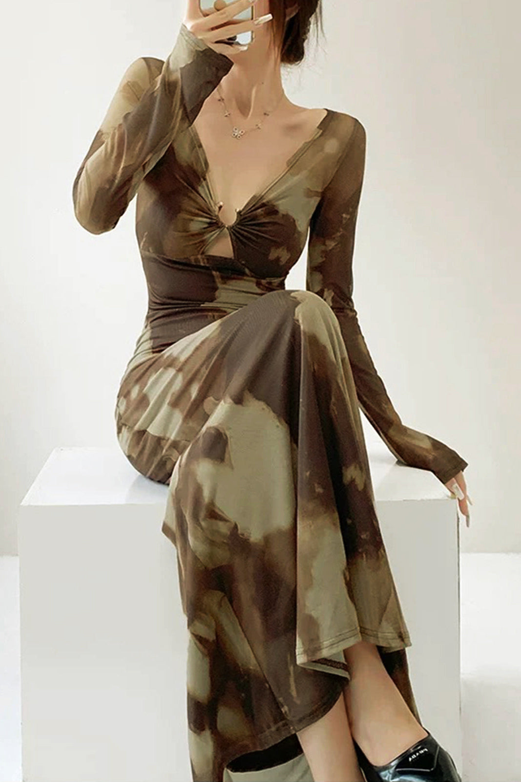 Daphne | Półprzezroczysta sukienka midi w ombre z U-ringiem