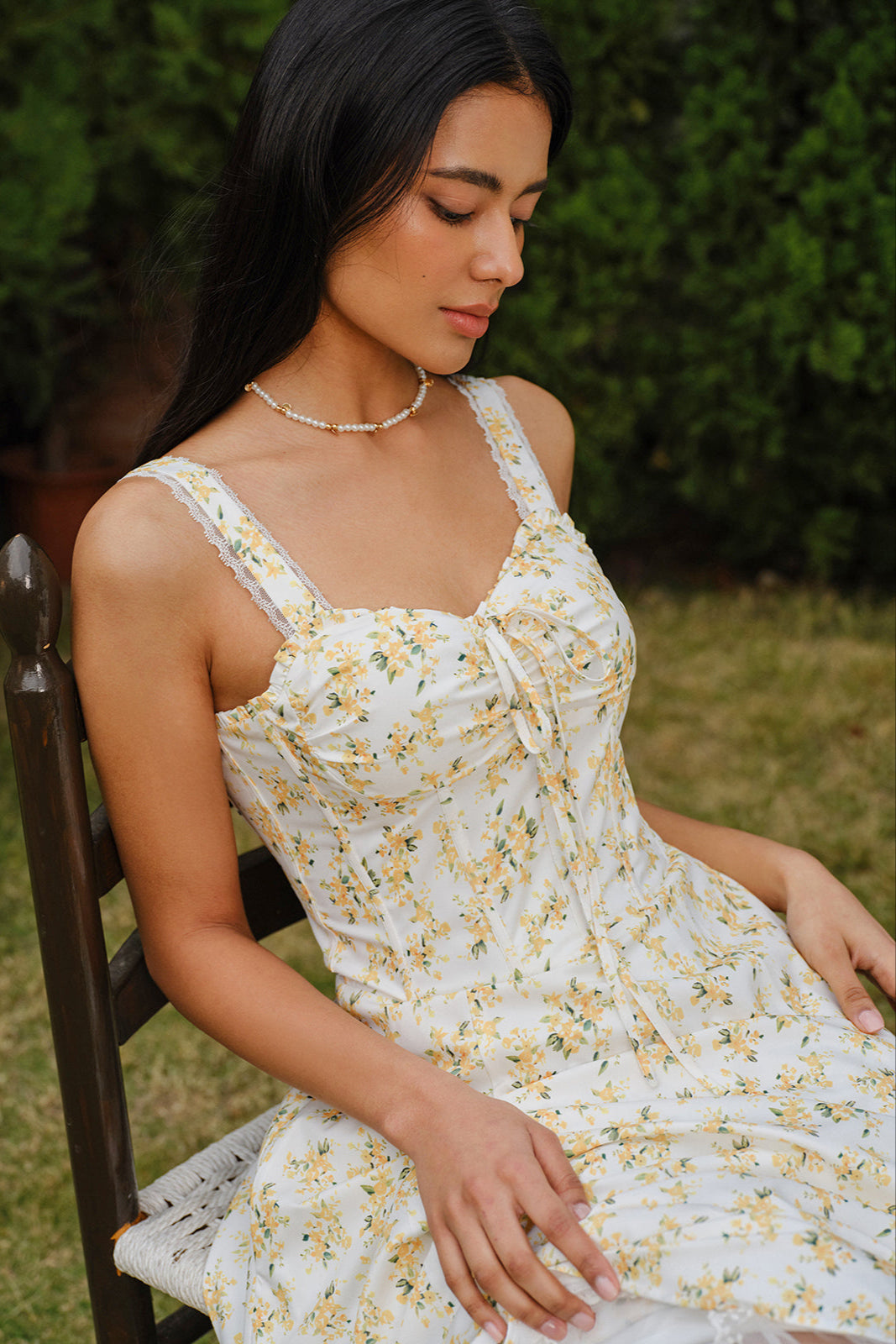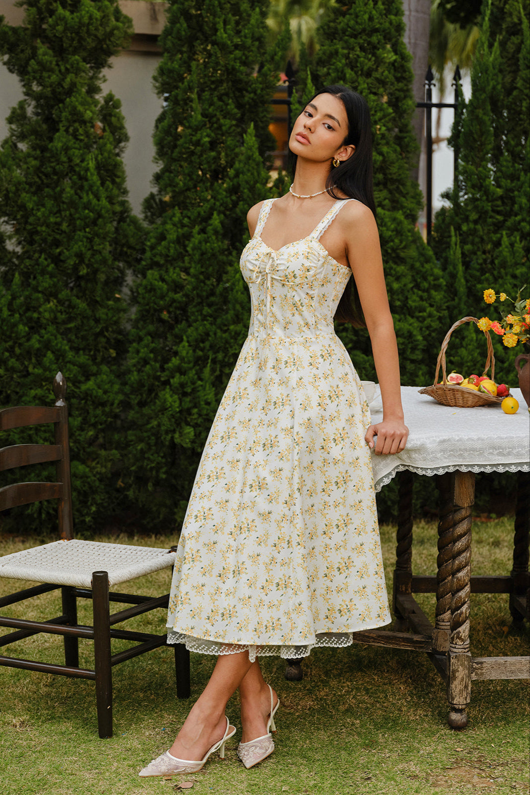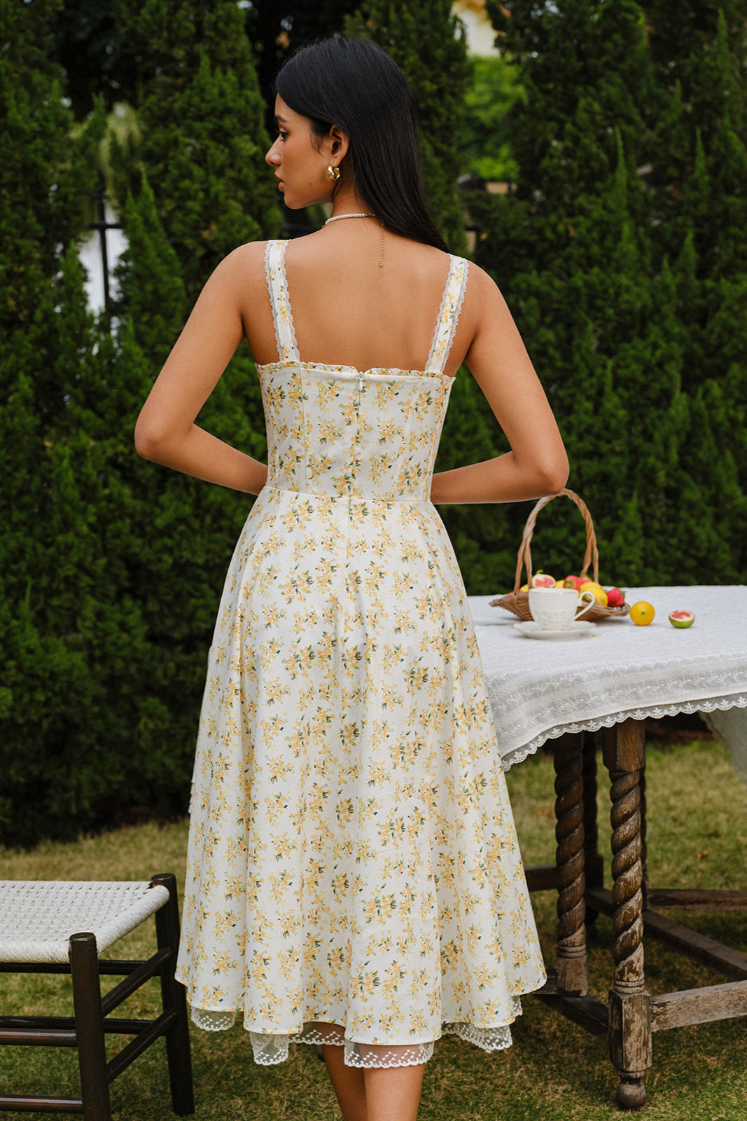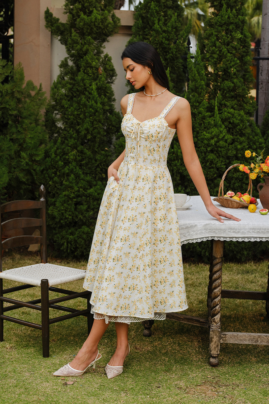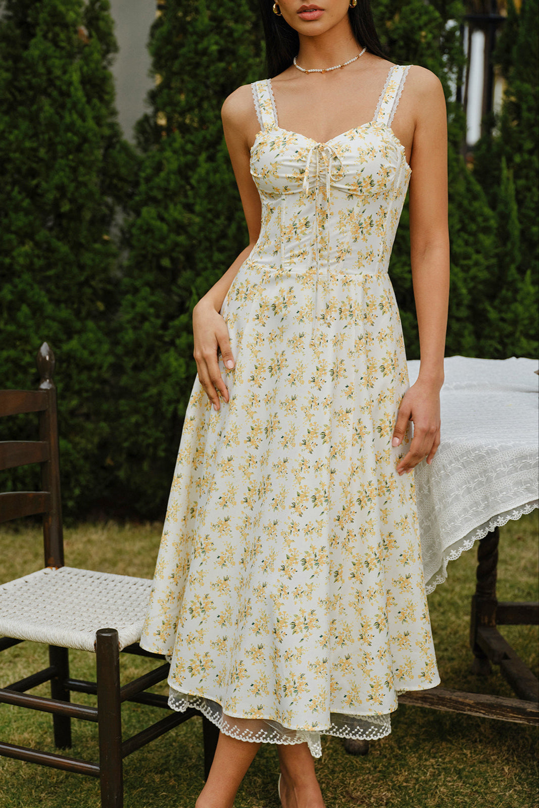 Sienna | Sukienka midi z kwiatowym koronkowym wykończeniem i wiązaniem z przodu