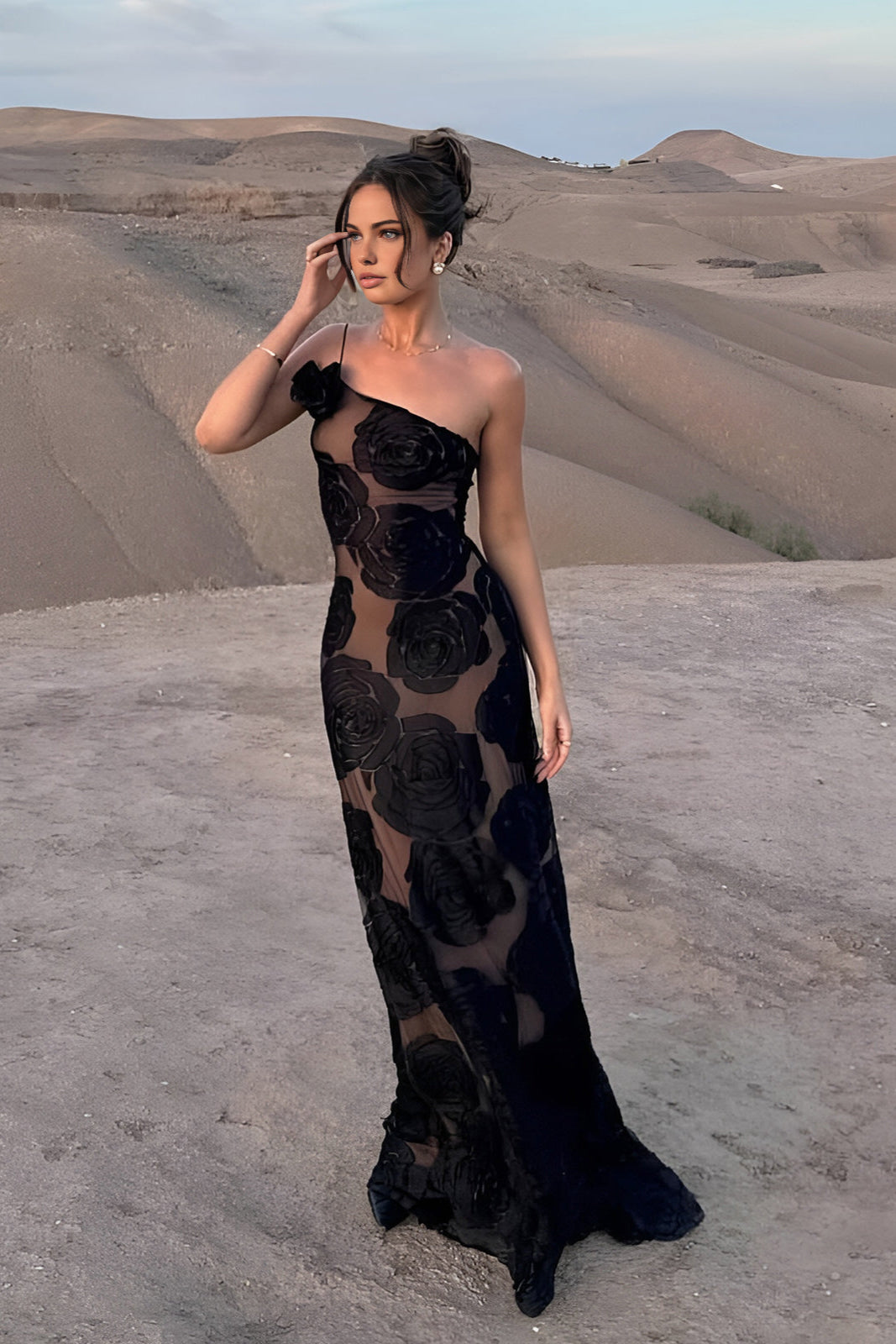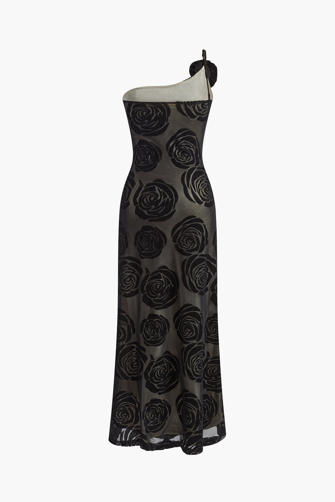 Celeste | Asymetryczna Długa Sukienka Kwiatowa z Żakardu