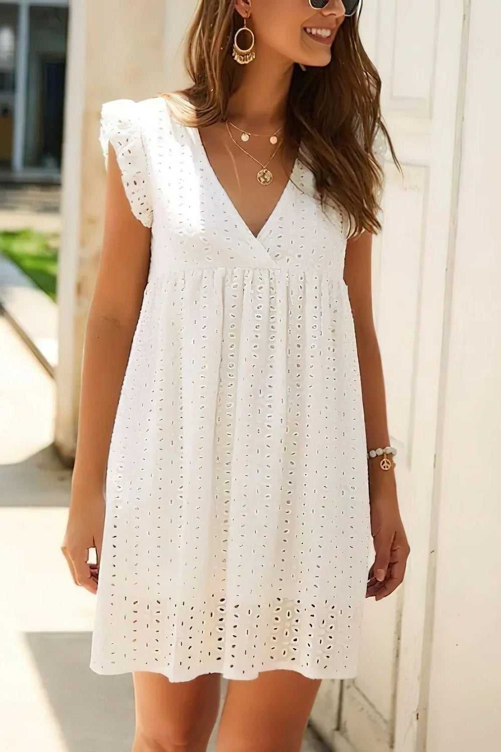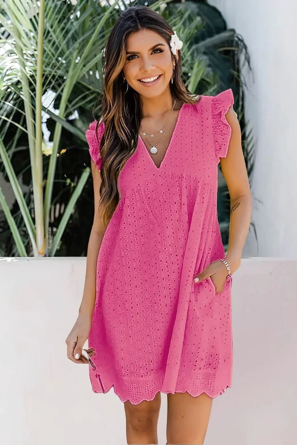 Odkryj naszą wszechstronną sukienkę, dostępną w różnych kolorach, wykonaną z połączenia 65% bawełny i 35% poliestru. Ten lekki, oddychający, miękki i elastyczny materiał gwarantuje niezwykle wygodne i przyjazne dla skóry użytkowanie. Dekolt w kształcie litery V oraz rękawy z falbankami dodają sukience elegancji i swobodnego charakteru.