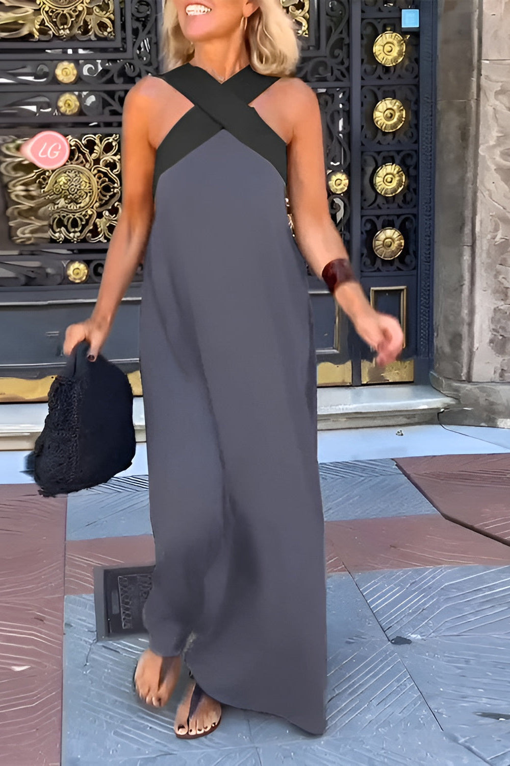 Kyra | Sukienka Maxi z Krzyżowym Zapięciem