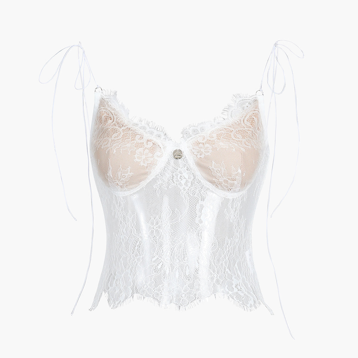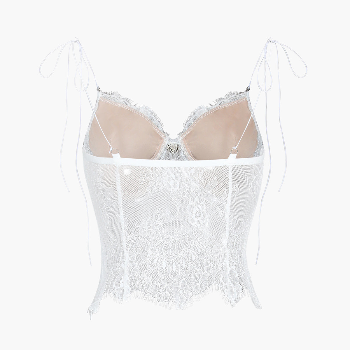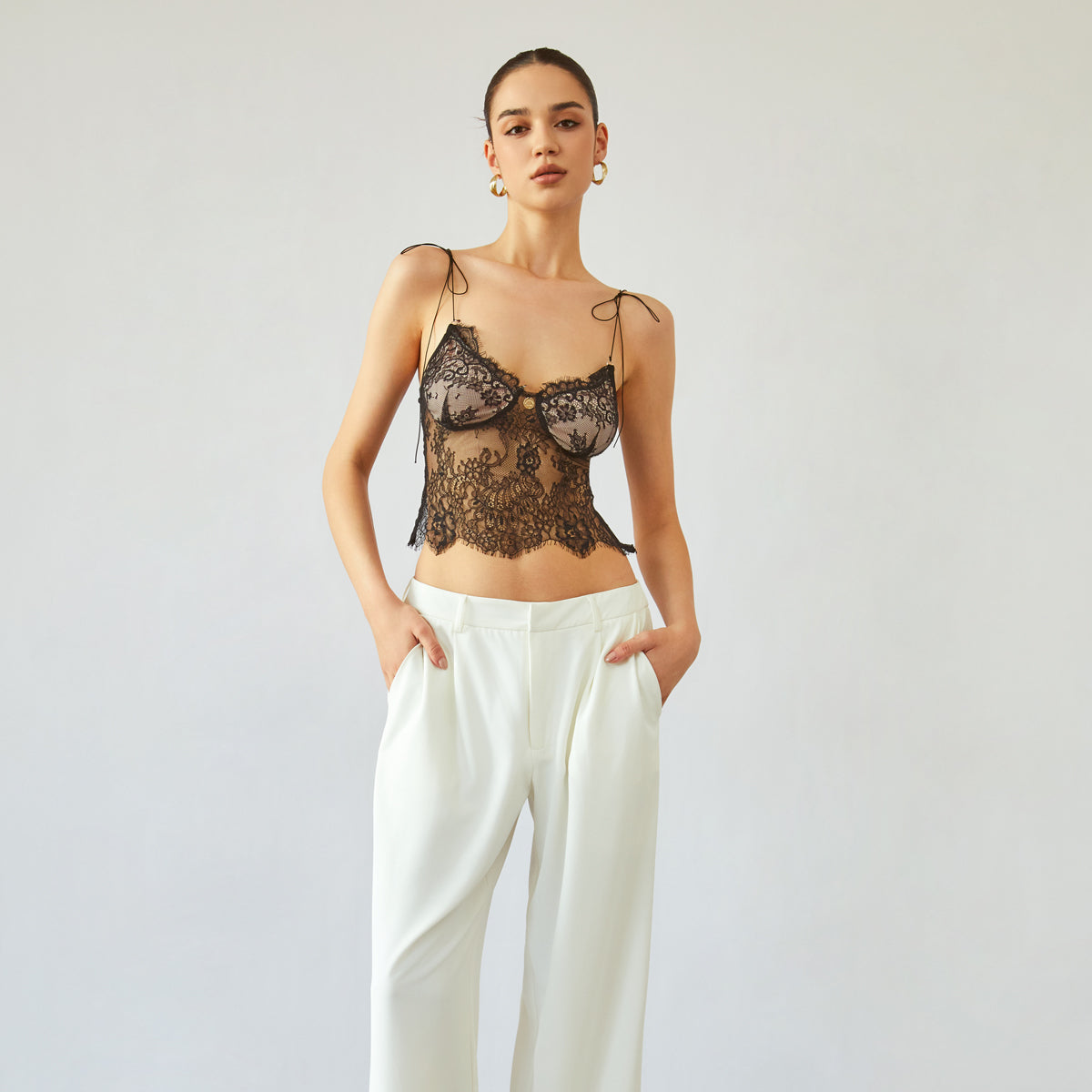 Kaira | Przezroczysty top na ramiączkach z koronką w kwiaty