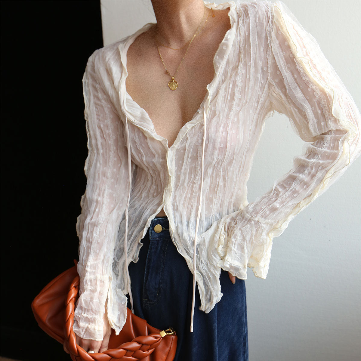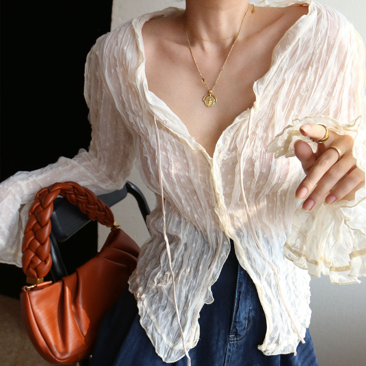 Vayana | Bluzka z długim rękawem z szyfonu z falbaną