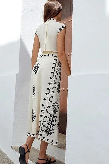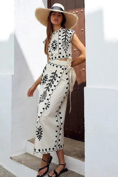 Przedstawiamy zestaw Camilla, składający się z topu i długiej spódnicy, oferujący uczucie piękna i świeżości, z odrobiną elegancji na każdą okazję. Ten wszechstronny i kobiecy design to idealny wybór na lato oraz na codzienne chwile.